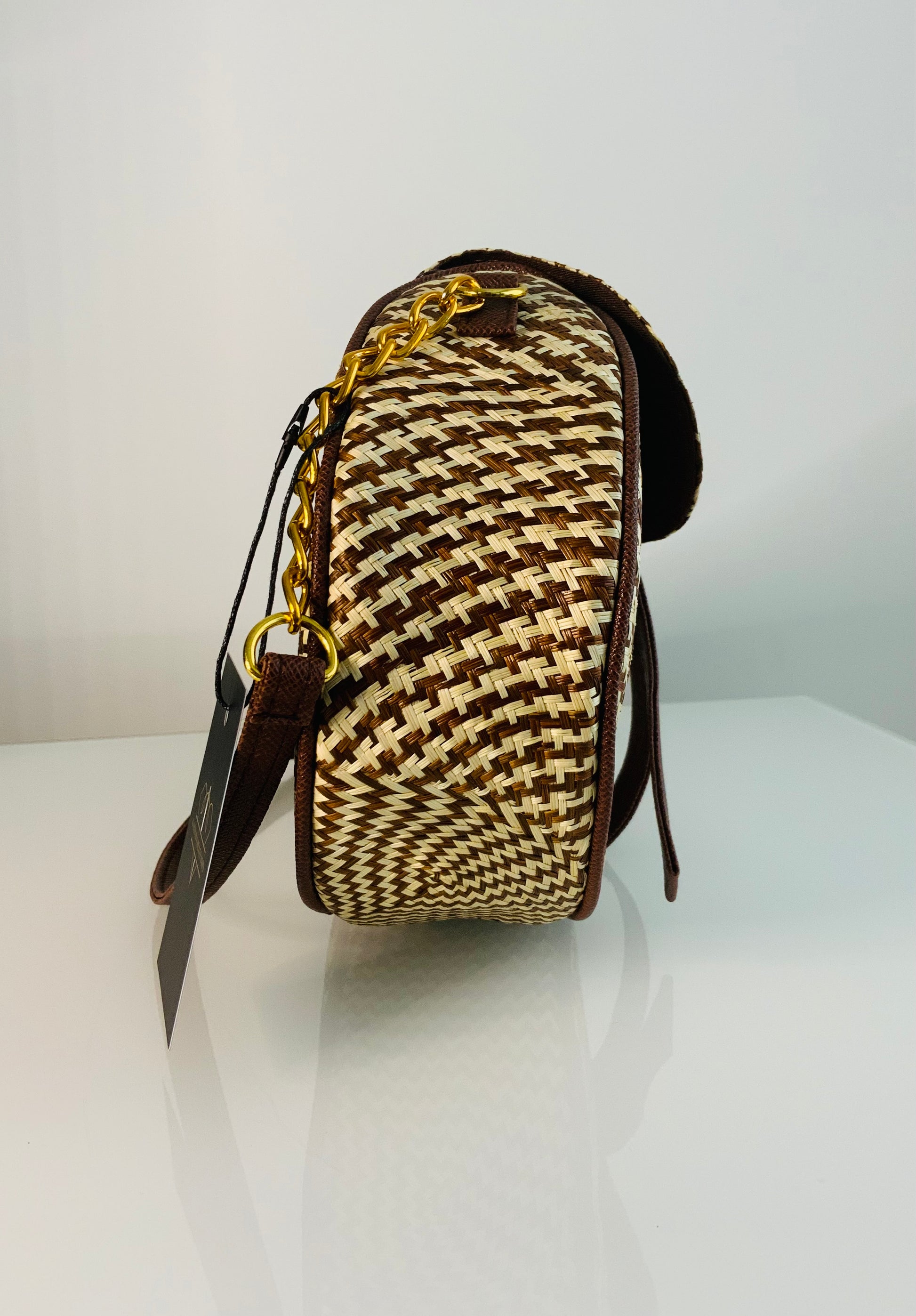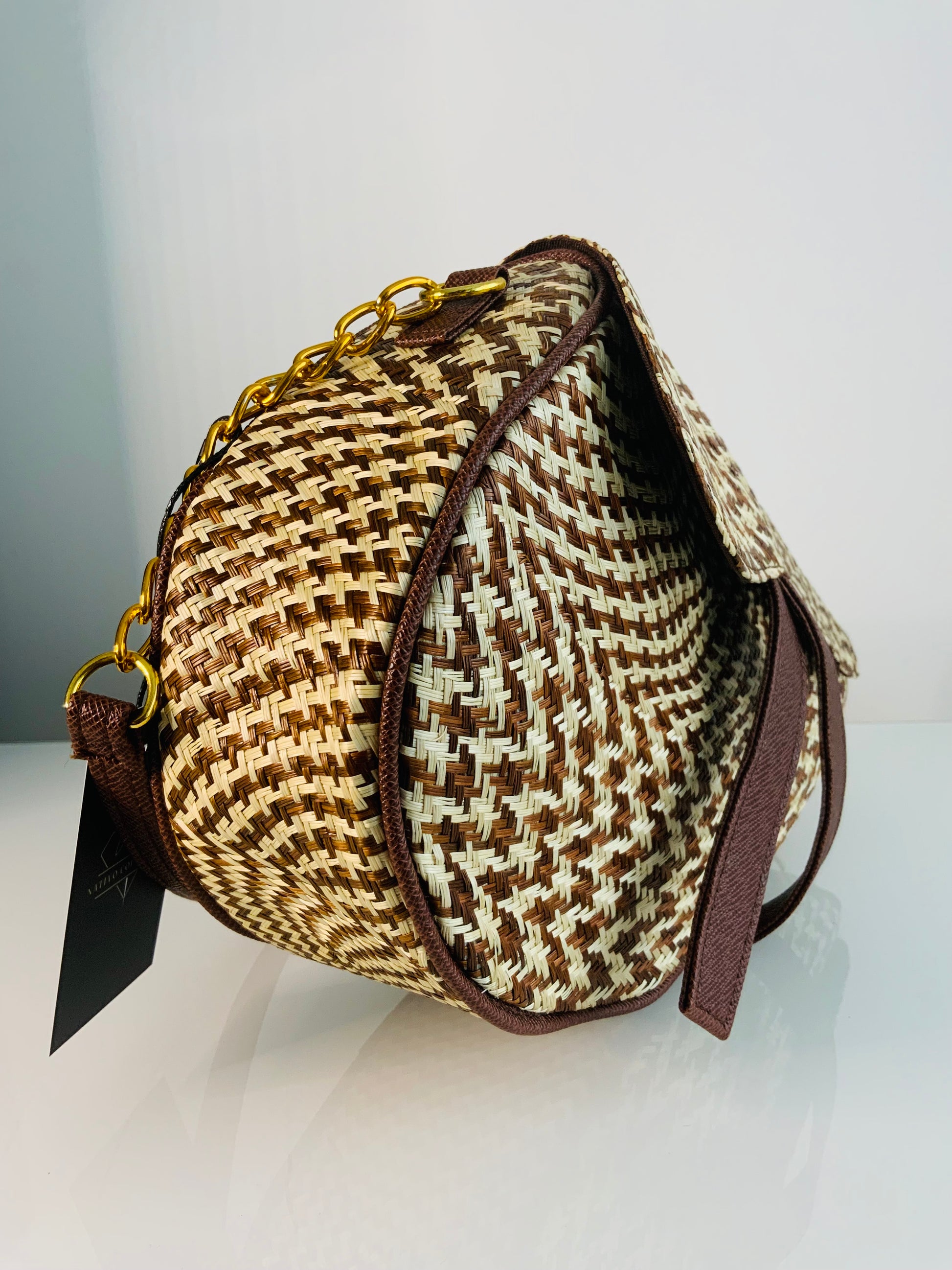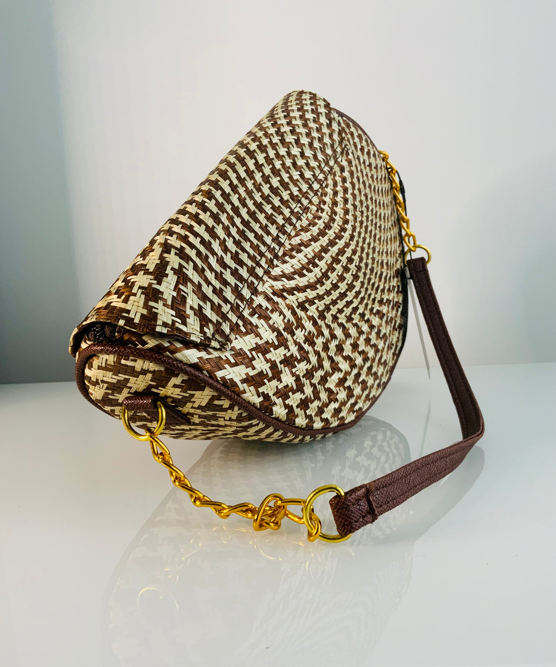 Dione is a native handwoven bag made from Pandan(Striped version is made of Buri leaves), sourced from the Pandan leaves in the Philippines, and woven into a durable, rustic material, often showcasing a unique bag.