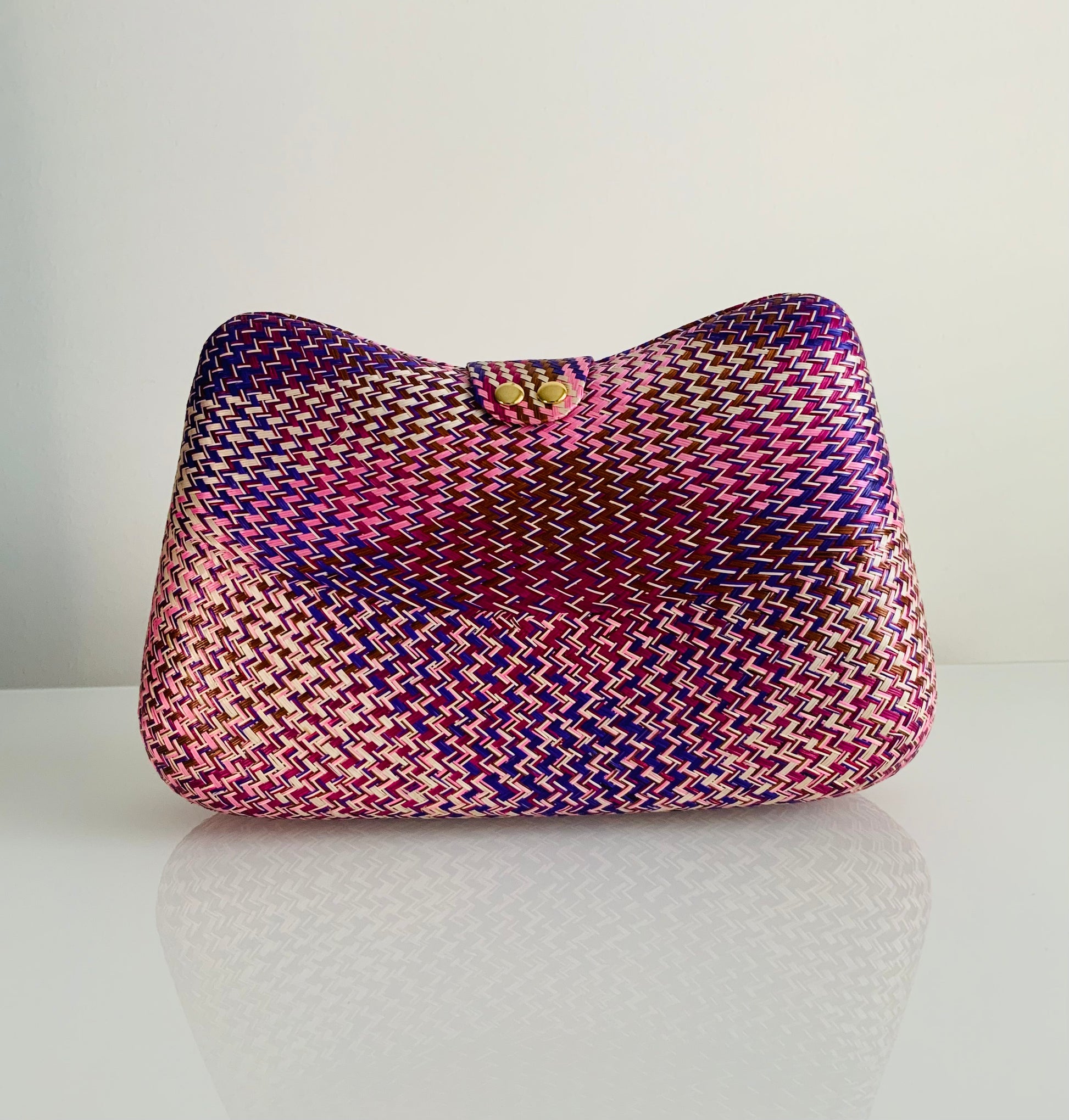Nina Clutch Bag is a native handwoven bag made from buri leaves, sourced from the buri palm tree in the Philippines, and woven into a durable, rustic material, often showcasing a unique bag.